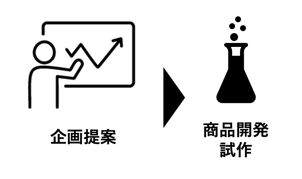 ご希望の商品コンセプトを元に、消費者トレンド・価格・お客様の業種・業態など、あらゆる面を検討に入れた上で、弊社が培ってきた経験とネットワークを駆使し、商品企画・戦略をご提案いたします。